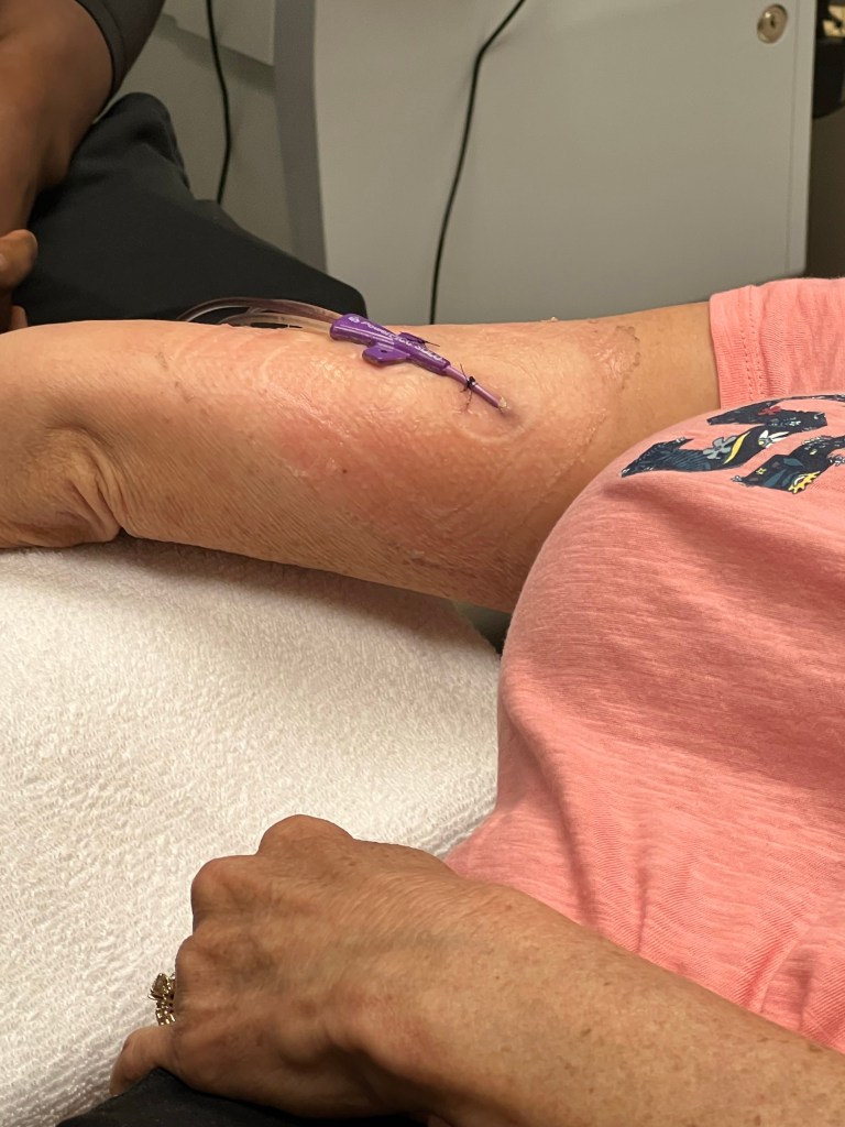 Yesterday was the day that were able to remove the PICC line. We know at some point around a year from now, we will have to put one back in for a follow up dose of chemo. That said…