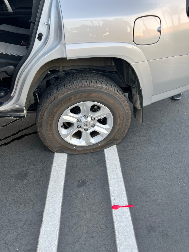 Yes… A Flat on the rental car. Mine. I noticed the tire inflation light and as I came to a stop light I knew it was flat. Thankfully, Jonathan and Christopher were in the second vehicle and not too far behind me. We were lucky to be in an empty parking lot. After a little work to figure out how to release the spare tire, we were back on the road again.